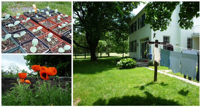Everything is better at the Farm. Laundry is suddenly fun when you have a clothesline to hang it on and the sun is shining. Meals are eaten outside, and fresh greens from the garden are oh-so delicious. Days fly by when there is so much to do: preparing of this season’s vegetable garden, keeping an eye on the maybe-it-is-or-maybe-it-isn’t-pregnant barn cat that lives in the hostas, breakfasts of tiny fried eggs from the neighbor’s chickens, the daily hunt for new blooms of peonies and poppies (!) and Italian oregano…