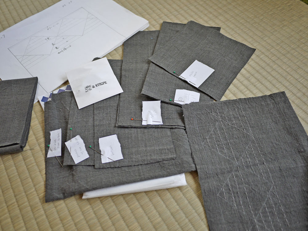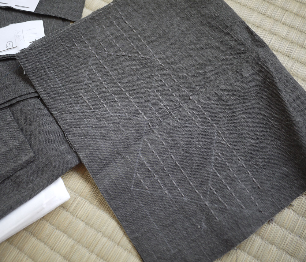 Perhaps it doesn’t seem like much has changed, but I swear it has. I’ve finished the sashiko stitching and now I just need my sensei to hold my hand while I pin and sew the pieces together. I’ve forgotten which goes where. It’s a bit of a mess, actually.