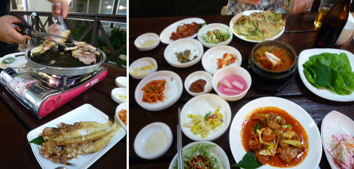 It’s pretty obvious that we love food. We’ve been in Tokyo almost 4 months now, and I’m still not sick of Japanese food. In fact, I crave it. I will try (almost) anything once, and even if I don’t care for a particular dish or cuisine, I can usually still appreciate its existence. And so, while on a recent trip to Korea I was excited to see what it had to offer my gullet. When I asked a friend who recently visited Korea what she thought of the food, she replied, “A whole lot of spicy and raw.” No problem, I thought. I like both those things, so I was excited for a Korea Food Adventure.