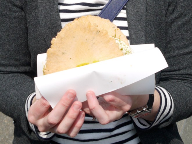 So OK, we did have one awesome night of non-spicy and non-raw foods, a meal eaten entirely at street carts. I feel like I wouldn’t do Seoul food (heh) justice if I didn’t show you these: