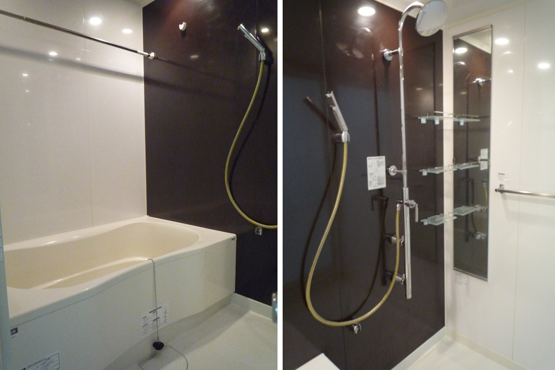 Past the sink and toilet is the Japanese-style shower room. I love the shower room. In a Japanese home, it is customary to soap up and rinse off before you get in your tub of hot water, so the entire room is waterproof. For me, it is more like a giant, heated shower. You can also hang clothes to dry and run a heater, auto fill the tub (a nice little voice tells you what is happening, though I can’t yet understand her), and spray down the whole room for cleaning. Brilliant, right? I don’t plan on taking too many baths and am a little sad that the tub is taking up valuable square meters better served by a sofa (ok, maybe not in that exact location), but overall I can’t complain about the shower room. Like it, like it, love love love!
