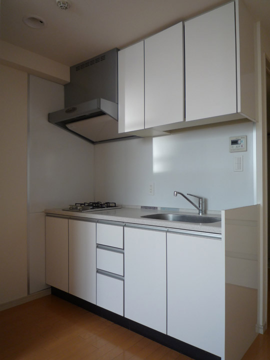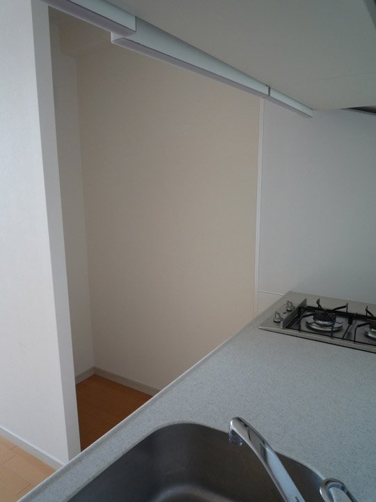 A peek at my other kitchen challenge — in Japan, an “unfurnished” apartment really means unfurnished, no appliances included. In this photo you can see the cubbyhole where our fridge will go, someday.