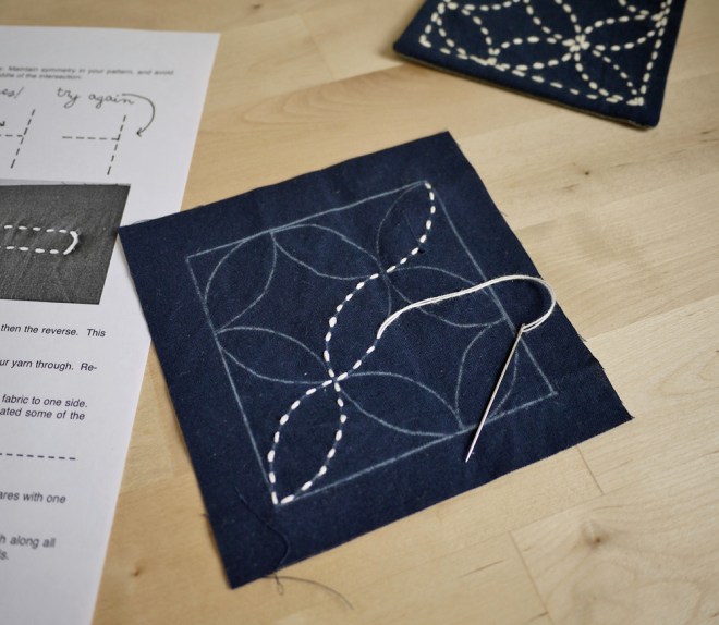 You can find the how-to page on the “sashiko” tab above the banner, and more sashiko kits in my Etsy shop. Good luck, and happy stitching!