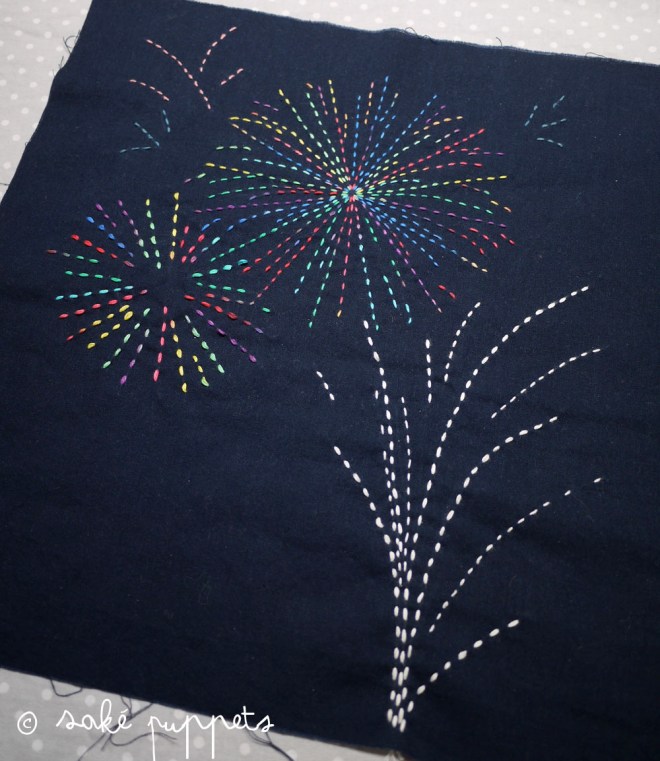 I love hanabi and matsuri season in Japan, and last year I posted this free sashiko pattern to celebrate. Hanabi, the Japanese word for fireworks, roughly translates to “fire flowers” though sometimes in Tokyo you’ll see fire shapes like fire Hello Kitty or fire sushi. No joke. I’m convinced that’s what I saw. 😉