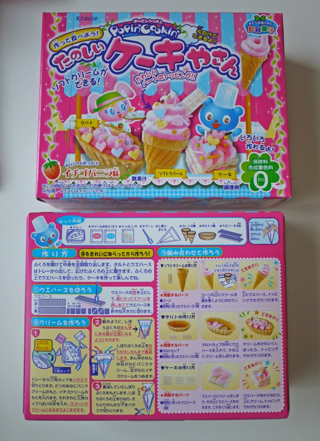 Before I left Tokyo I picked up a few of these kits to give as gifts. I don’t think other people are as excited about them as I am, but that didn’t stop me. These little Popin’ Cookin’ and Happy Kitchen candy-making kits are very cute, and a really good example of Japanese homestyle cooking: just add water.
