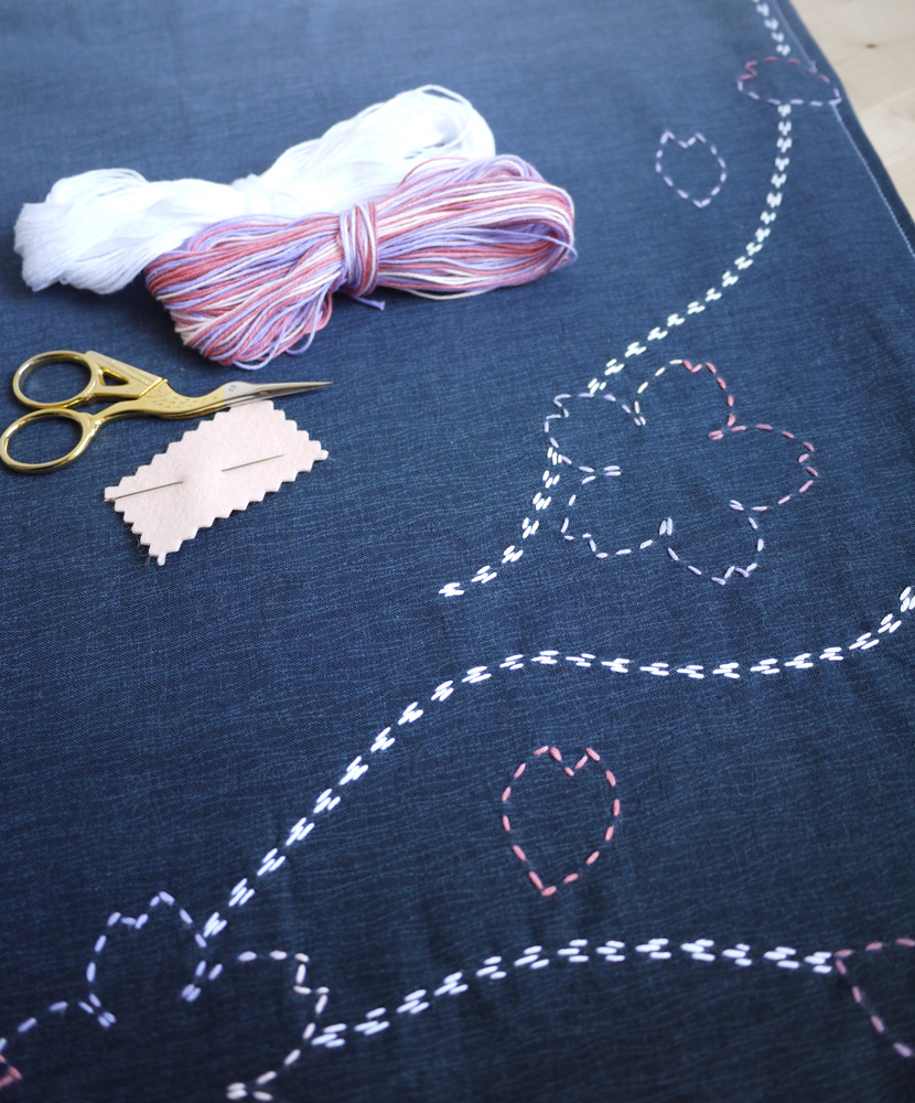 While visiting the Kawaii Nunohaku craft fair last month I bought two small pieces of fabric from a Kamakura-based shop owner. The fabric was a beautiful pairing and I knew right away that I wanted to use them in a scarf.