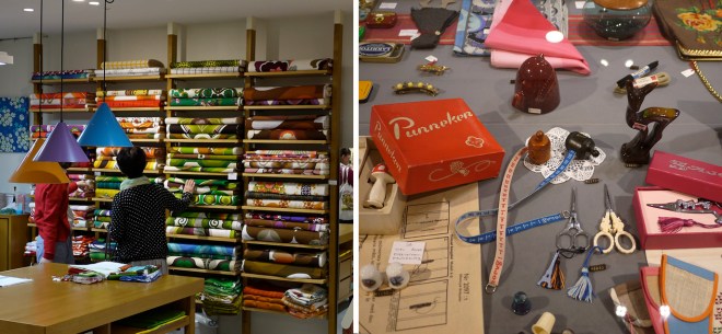 Let’s begin with Hobbyra Hobbyre, a French-embroidery-inspired, Liberty-of-London-lover’s paradise. This shop carries a little bit of a lot of things, but all were of the best quality — beautiful cotton and linen print fabrics, fine yarns and wood knitting needles, sewing patterns and books, needlework supplies, selected tools and notions, and amazing printed embroidery kits. I mean amazing. I wanted to leave with a few of each.