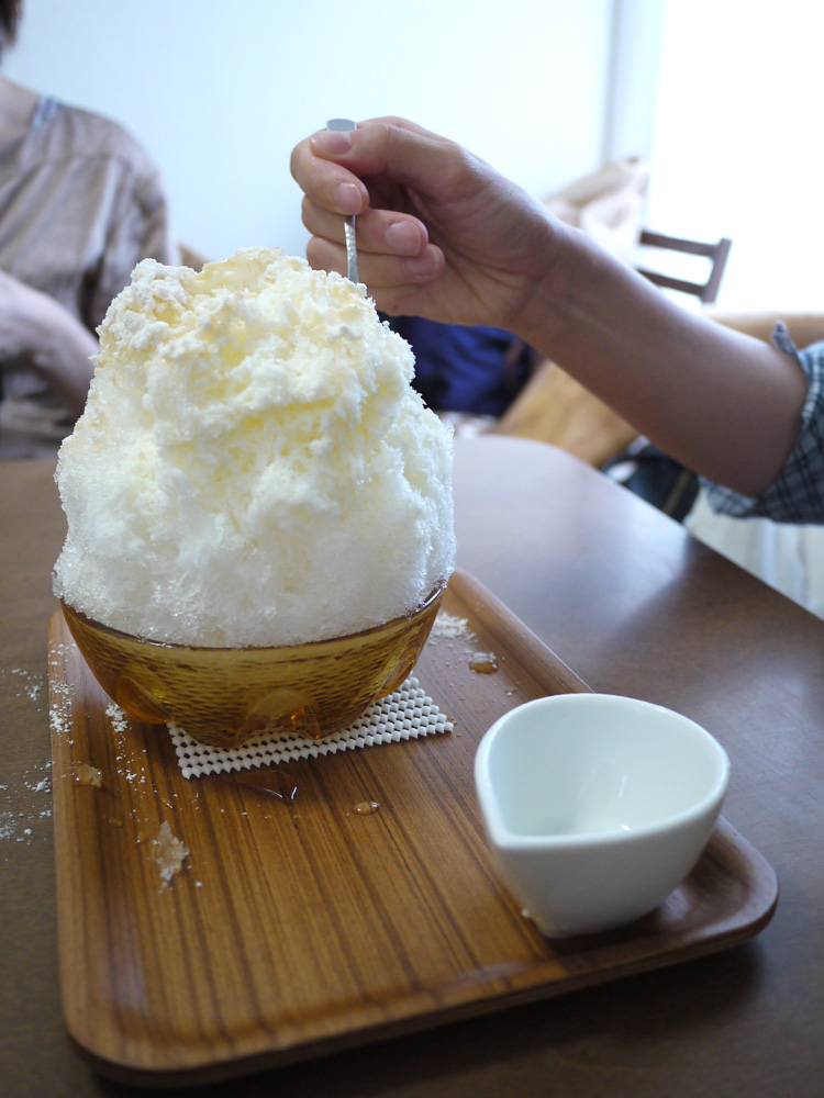 Kakigori is a summertime dessert made from finely shaved ice, topped with sweet syrup and occasionally, sweetened condensed milk. This shop is famous because they get their ice from a glacier in the mountains (maybe?). Don’t you dare call it a snow cone.